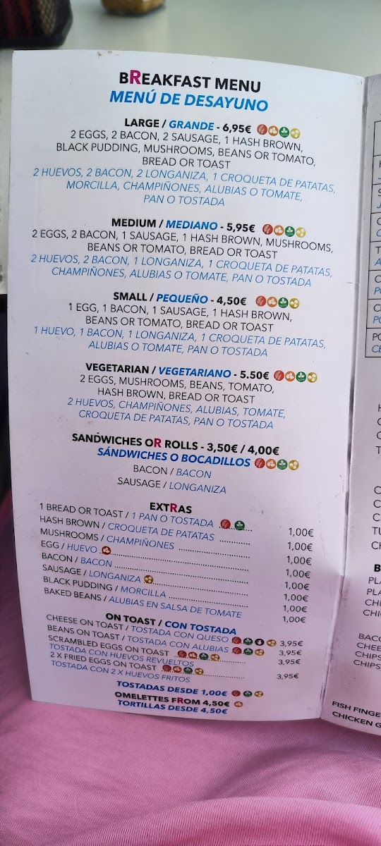 Food items generally include breakfast plates, snacks, and more substantial meals like fries and burgers, which are also available for takeaway. The menu is structured to accommodate quick orders as well as more relaxed dining experiences, with options that cater to individual preferences and casual visits.